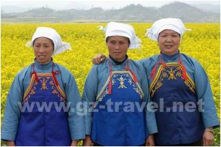 吃:农家乐:布依族村民以大米为主粮,喜酿酒、饮酒,饮食口味以酸味为特色,有发酵的酸水及腌制的蔬菜、腊肉等,芳香可口,是待客珍品。15元/人,天盘江狗肉:30元/斤,品尝冰脆酥李。 住:县城或贵阳